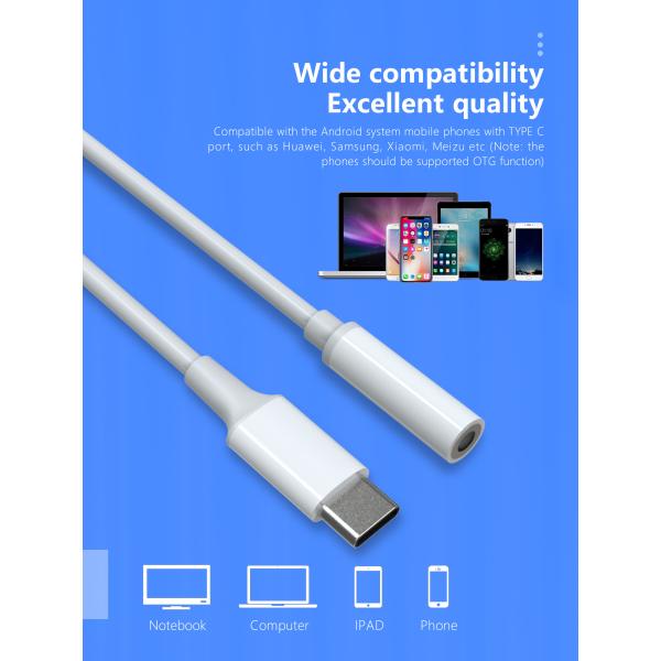 White OCC 10-13cm Usb Type C Audio Cable Type C To 3.5mm Headphone Jack Images |